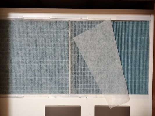 プレフィルター交換前は埃で裏側の青い抗ウィルスフィルターが見えませんでしたが、交換後はスッキリと内側のフィルターが良く見えます。